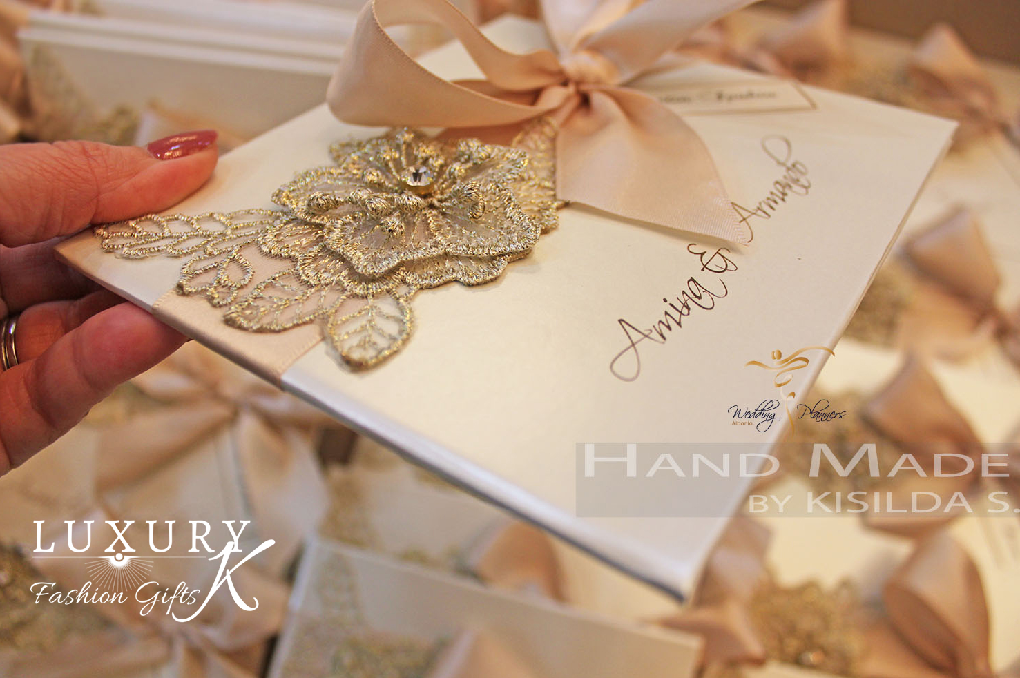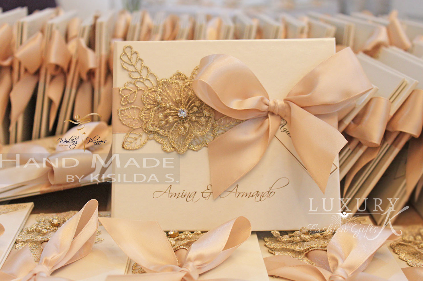 Best Seller! This invitation has fascinated brides. Its elegance and splendor makes it suitable for weddings which have a luxury theme but also a bit vintage. Gold lace and special paper will make your guest want to keep it forever.