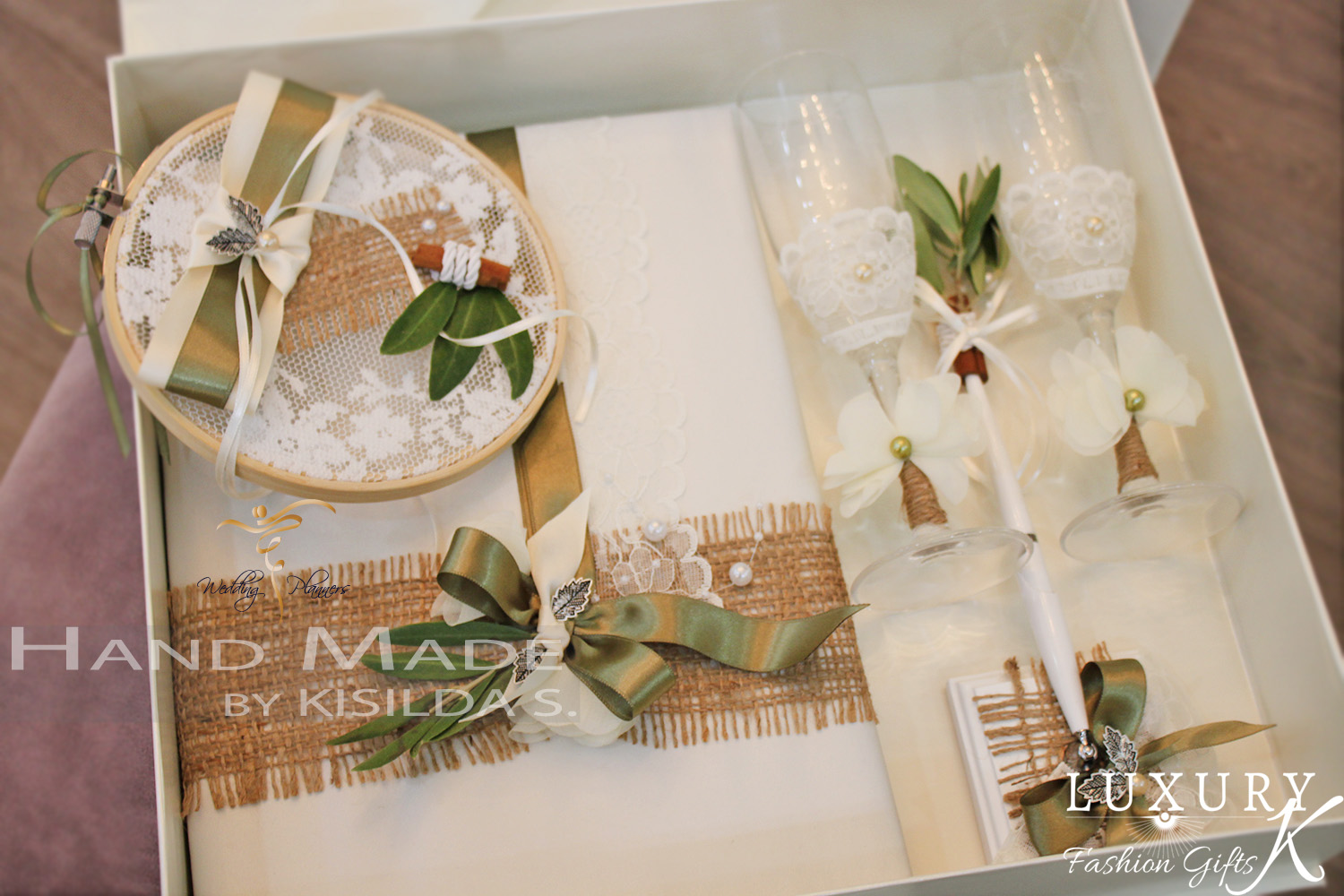 Guest books Set, Ring Holder, champagne glass, Box.