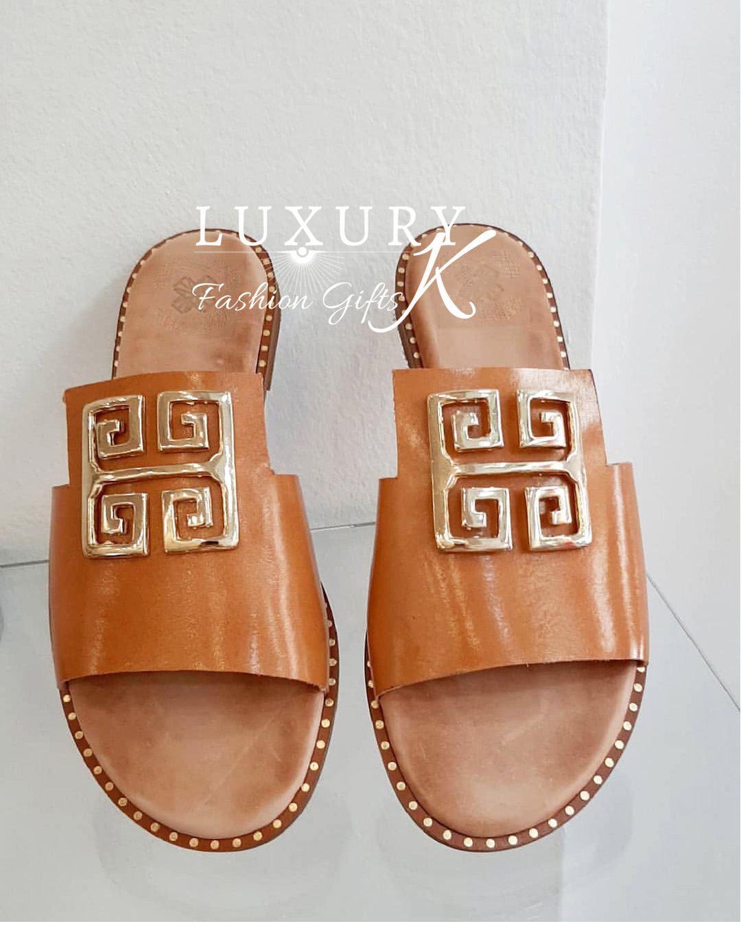 Δερμάτινες Παντόφλες Hellenic με Τετράγωνη Πέτρα.